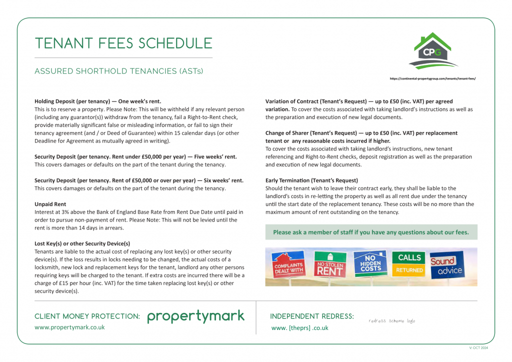 • Variation of the contract at the request of the tenants £50 per agreed variation